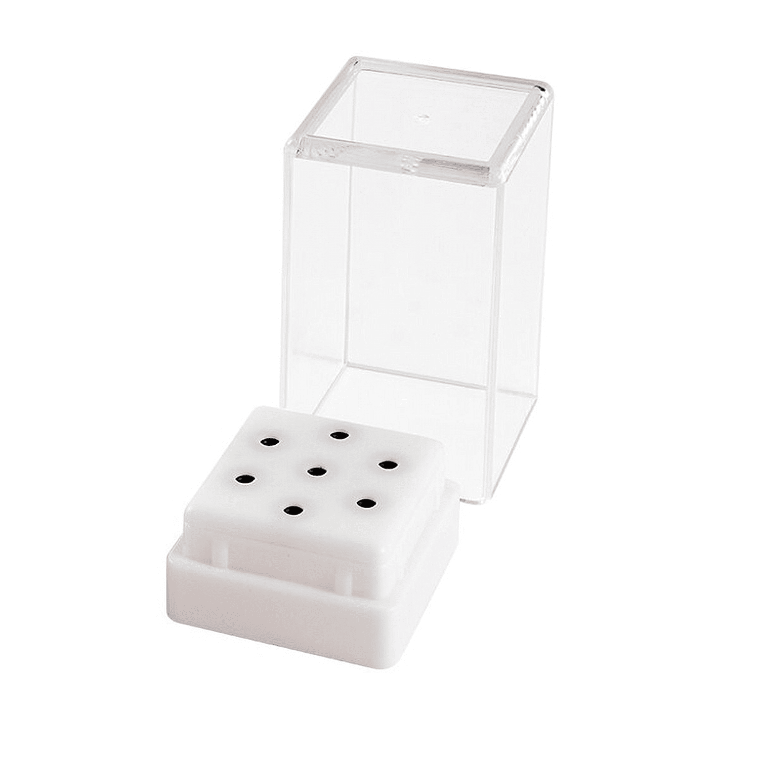 Peut contenir jusqu’à dix embouts et les garde à l’abri de la poussière grâce au couvercle.