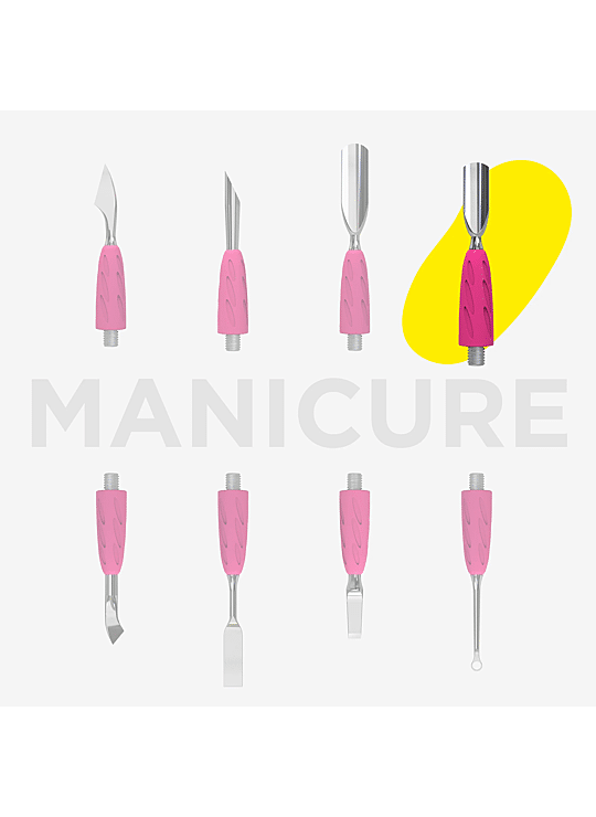 UNIQ COMBO – Stel Je Eigen Cuticle Pusher Samen De UNIQ COMBO is hét modulaire systeem waarmee je een cuticle pusher volledig naar wens samenstelt. Dankzij de verwisselbare werkstukken kies je zelf de tools die je nodig hebt, zodat je altijd efficiënt en nauwkeurig kunt werken. Het handvat is gemaakt van lichtgewicht en duurzaam aluminium, wat langdurig gebruik minder belastend maakt voor de hand. De ergonomische vorm zorgt voor een stevige grip, terwijl de siliconencoating op de werkstukken extra comfort biedt. Het grote voordeel? Je hoeft nooit meer een volledig nieuwe pusher te kopen. Verslijt een werkstuk of wil je een andere functie? Dan vervang je enkel het opzetstuk en werk je verder. Dit bespaart niet alleen kosten, maar is ook duurzamer en vermindert afval. De UNIQ COMBO biedt de ultieme flexibiliteit voor nagelstylisten en pedicures. Sommige opzetstukken zijn geschikt voor zowel manicure als pedicure, andere zijn specifiek ontworpen voor één toepassing. Dit betekent dat je slechts één tool nodig hebt in plaats van meerdere, wat niet alleen economischer is, maar ook je werkplek overzichtelijker houdt. Waarom kiezen voor de UNIQ COMBO?